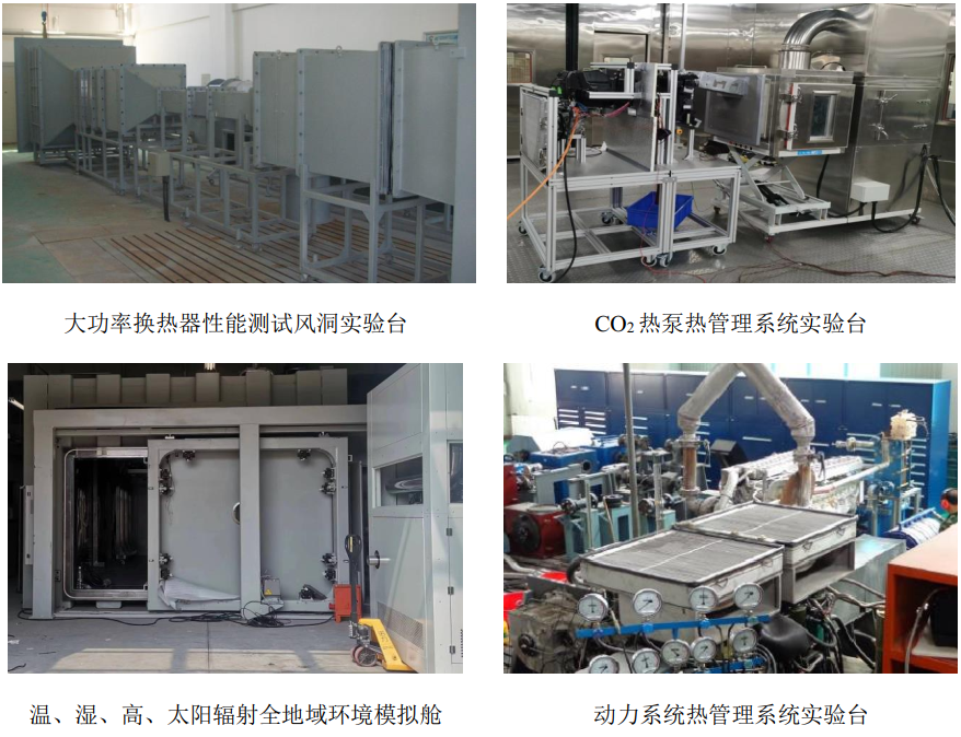 围绕新能源车辆热泵热管理系统的关键科学问题,建有温、湿、高、太阳辐射全地域环境模拟舱,实现CO2热泵热管理系统全地域性能测试,突破CO2热泵热管理系统设计、仿真、实验与控制策略关键技术;针对坦克装甲车辆动力系统及混合动力系统热管理需求,开展系统设计、仿真分析、性能实验,以及高效换热器流动与传热特性研究。
