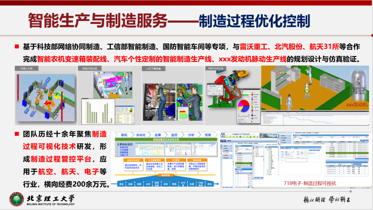 工业与智能系统工程研究所依托机械工程(一级学科)03方向(智能制造工程)、工业与系统工程二级交叉学科(2012 年被工业和信息化部评为新兴交叉重点学科),具体开展智能设计与数据管理、智能生产与制造服务、人因与智能人机交互、交通运输与物流工程、质量与可靠性工程等方向的研究工作。近年来,研究团队围绕国家智能制造发展战略,以国家重大需求为指引,重点开展了基于知识工程的武器系统智能设计技术、面向增材制造的产品设计技术,生产系统智能优化与决策理论、复杂装备远程运维与服务技术,基于数据的装备研制过程质量控制方法、武器系统维修性设计与评估技术、人因与人机交互技术等研究,所取得的成果已在航空/航天、船舶、兵器、农业装备等中国制造2025规划的十大重点领域得到推广应用。