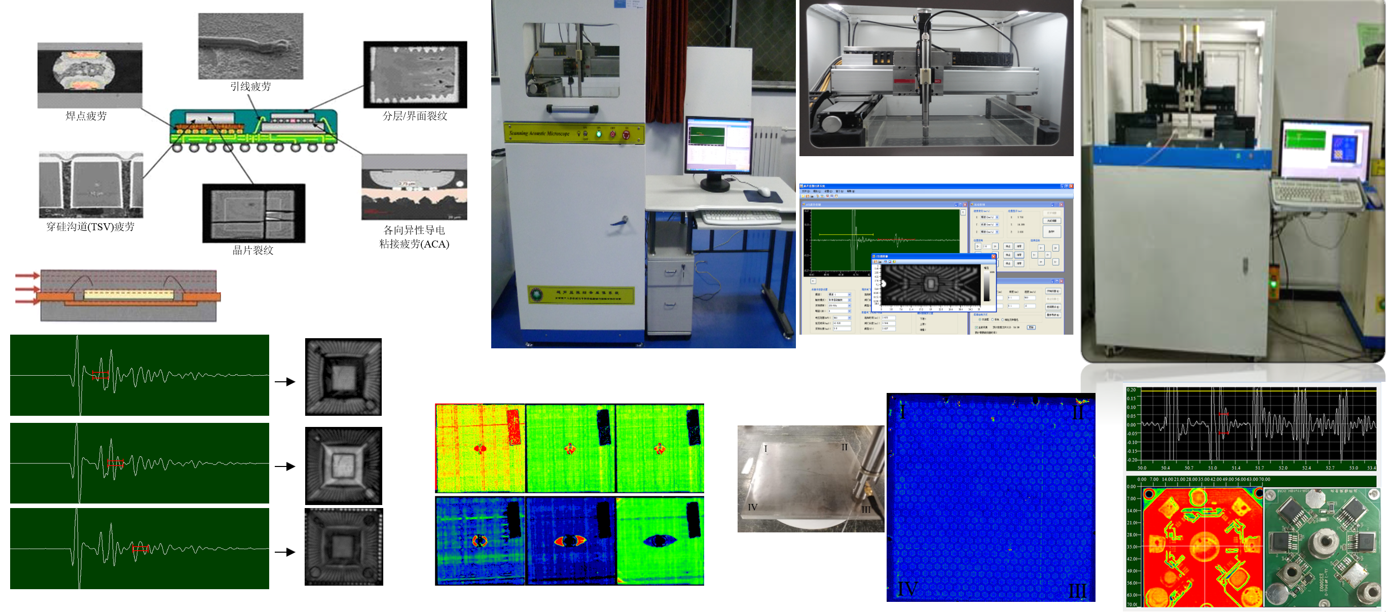 在国家自然科学基金重点项目等资助下,自主研制了一套高频超声显微镜,应用于半导体和电子封装缺陷检测与失效分析、电路板焊接质量检测与分析、材料织构观测与研究、生物医学等领域的无损检测与观察。