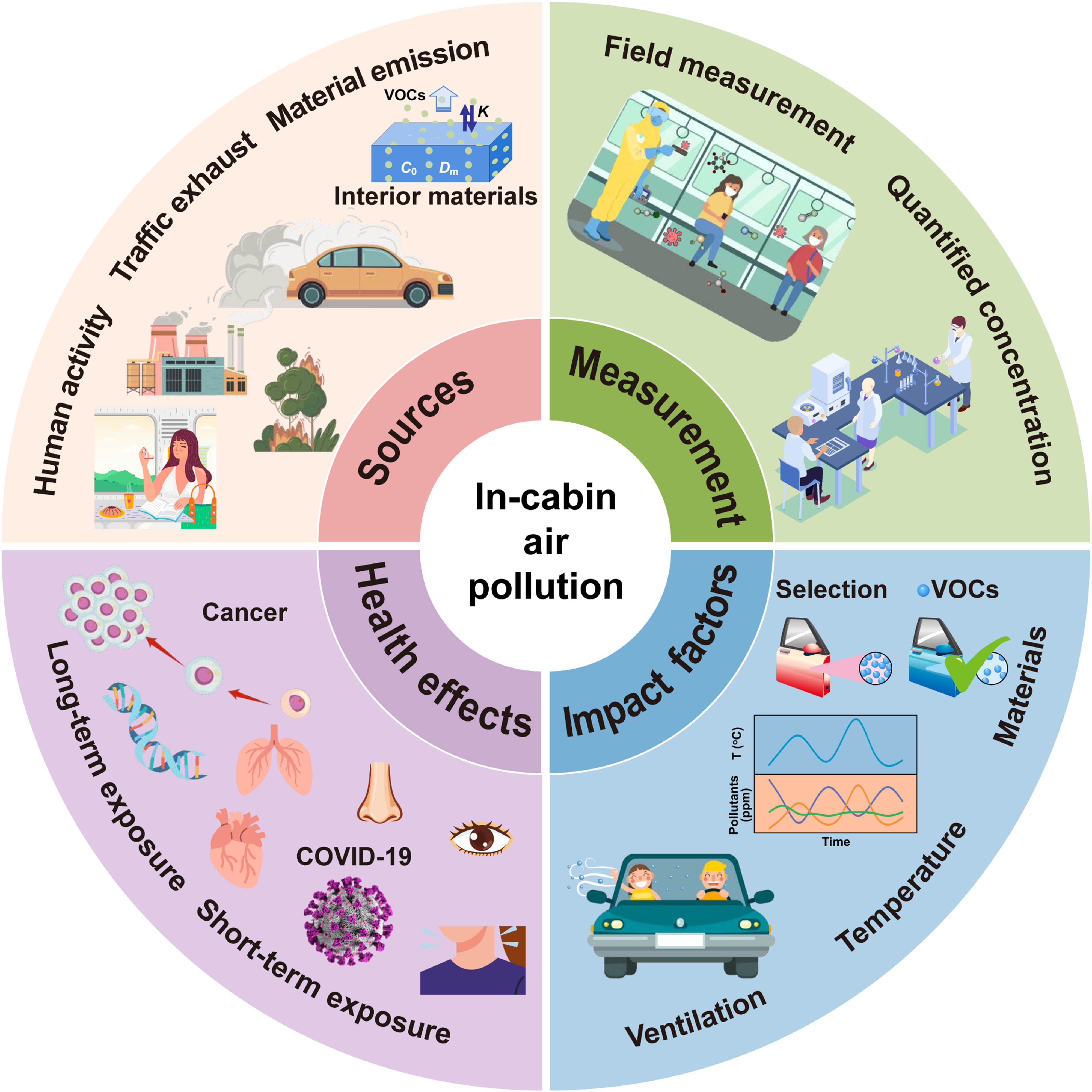 图1. 陆海空交通工具座舱环境污染及健康影响