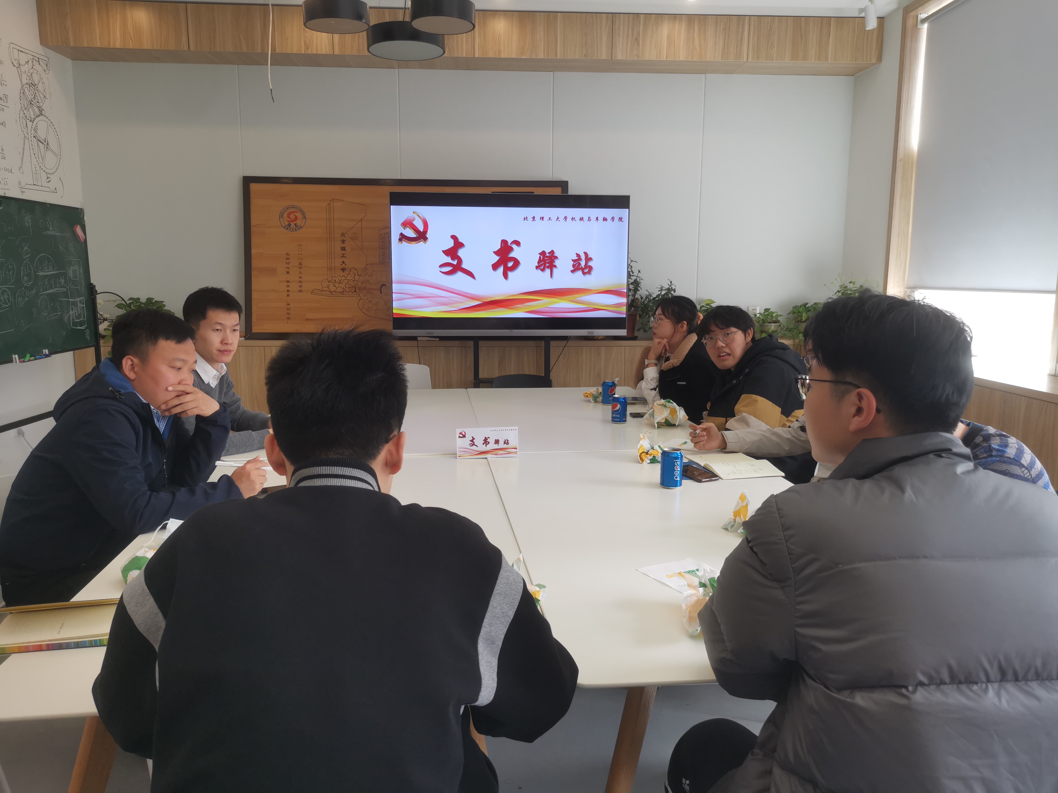 六位学生党支部书记依次分享了党支部建设的特色和工作开展中的困难,大家就支部存在的问题及改进方法等进行了讨论。宋春宝就学生党支部的建设和学生对入党初心的认识等方面进行了指导和分享,魏瑶就发展党员程序、支部党建活动开展形式等方面进行了答疑和建议。最后倪俊进行总结,他强调了党支书在学生党员管理中的重要作用,希望党支书能够以身作则,传递正能量,深入党员和群众,了解和掌握他们的思想、工作和生活情况,及时地、有针对性地做好党员和群众的思想政治工作,充分发挥他们的积极性和创造性。同时,他鼓励学生党支部积极和教师党支部加强联学共建,扎实开展学生党建工作。