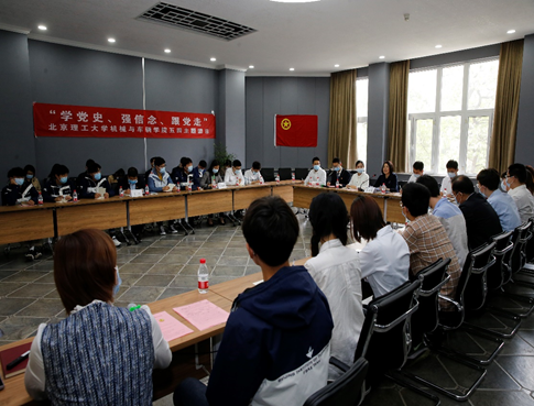 团日活动中,周洋捷同学首先就党史学习教育开展学习心得分享,他就“长征精神”的内涵意义与如何“走好新时代的长征路”进行分享学习,并结合“北理工精神”讲述了我校师生在爱国奋斗故事。随后,学校青春榜样、全国青马工程高校班学员刘金佳与大家交流了她在党史学习和日常实践锻炼中的所思所感,结合自己在广西研究生支教团的故事,号召同学们将个人梦与“中国梦”“强国梦”相融合,为国奉献青春力量。学校青春榜样、方程式赛车队宁长久结合赛车队研发国际第一辆大学生无人方程式赛车、车队为国征战世界赛场的故事,分享了青年学生以“立大志、明大德、成大才、担大任”为奋斗目标,“勇于创新创造”的实际行动。张梓超同学动情地为大家分享了电动车国家工程实验室团队师生面向国家重大战略需求,研发全气候纯电动客车保障冬奥、攻克技术难关的经历,表示要向迎难而上的老一辈北理工人学习,继承优良传统用实际行动谱写“新时代的长征路”。