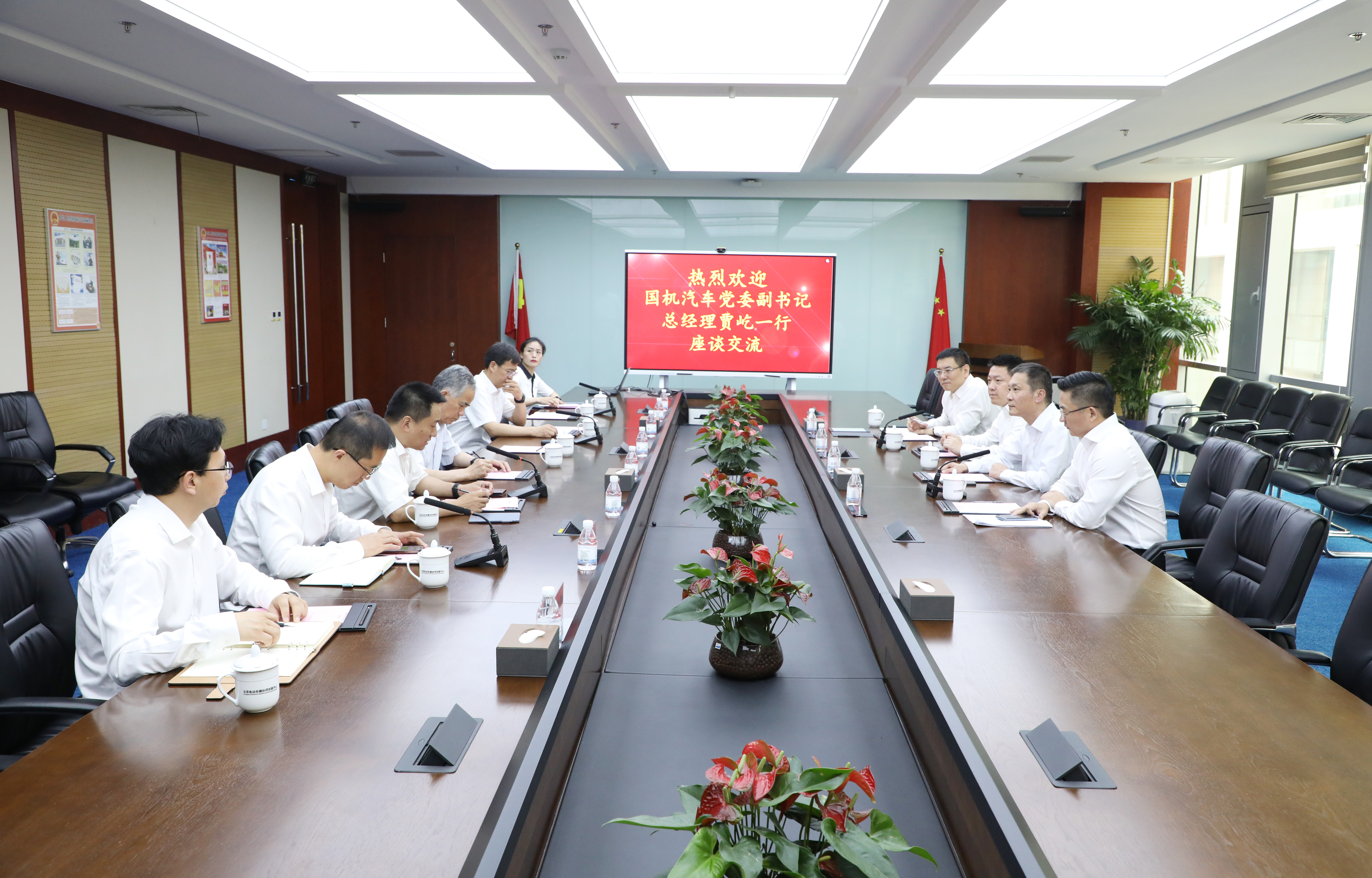活动过程中,各方实地参观了新能源汽车国家监测与管理平台,并举行交流座谈。贾屹介绍了国机汽车、中进汽贸的基本情况,着重介绍了中进汽贸完善的批发、零售业态服务能力体系,汽车领域仓储物流服务业务核心能力,综合服务信息系统以及市场、渠道、品牌、业务管理全链条配套服务规模和能力。