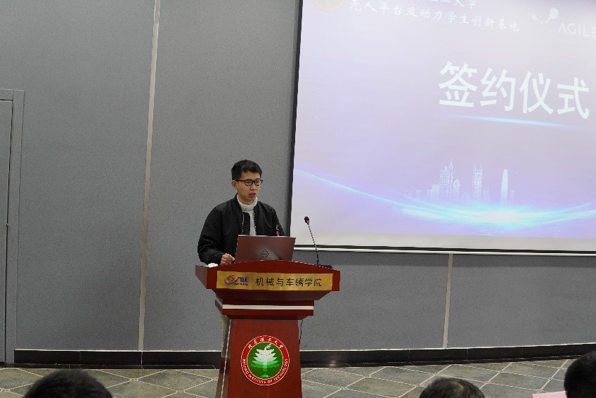 黄彪副院长代表必威西汉姆联官网必威西汉姆联欢迎松灵机器人魏总等一行人员的到来,他介绍了必威西汉姆联官网必威西汉姆联基本情况,重点介绍了学生创新创业方面取得的卓越成绩,强调学校的工程教育和改革离不开各个企业的介入与支持,希望通过与松灵机器人的校企合作能够在多维度取得更大的成果。