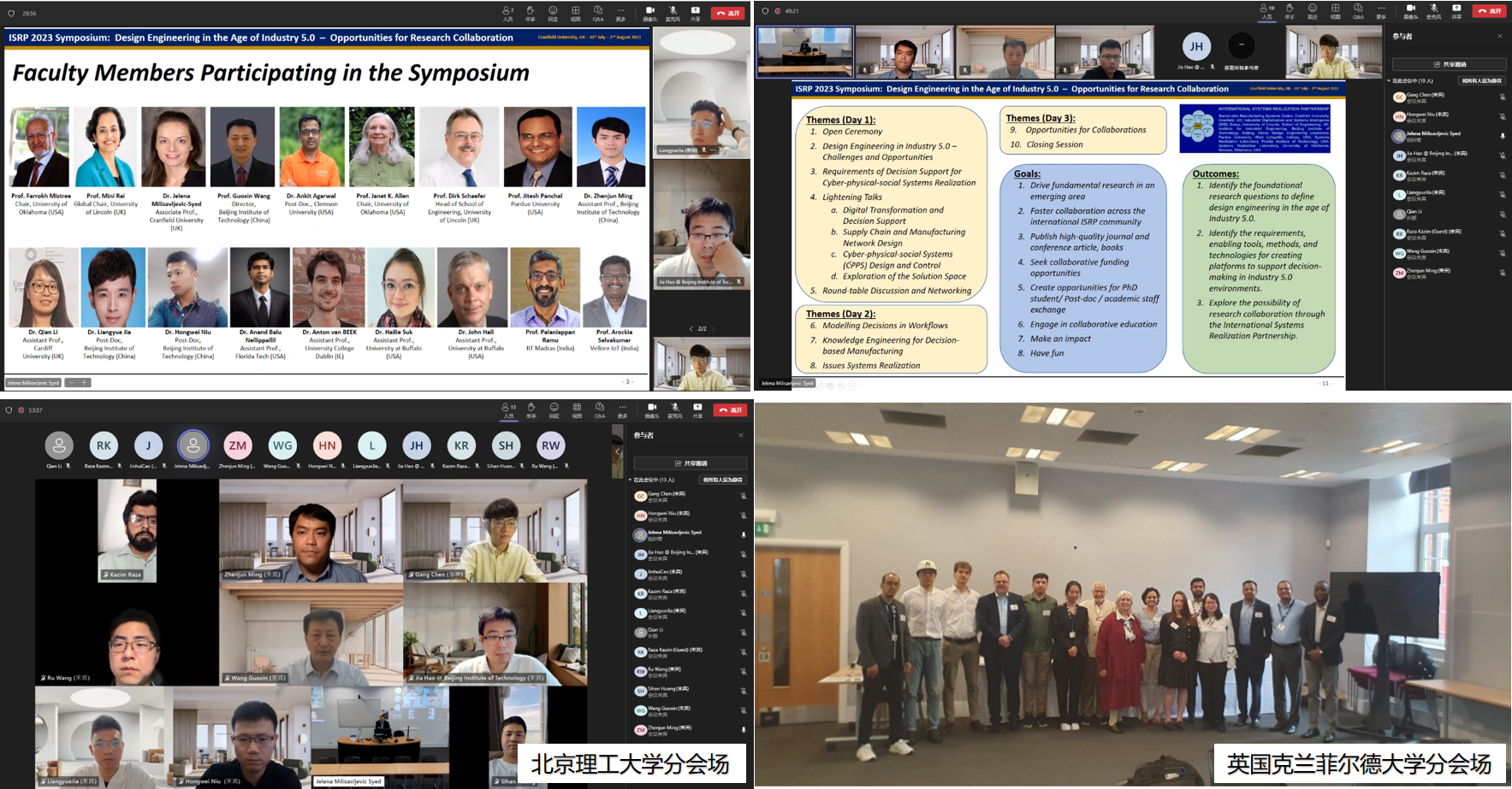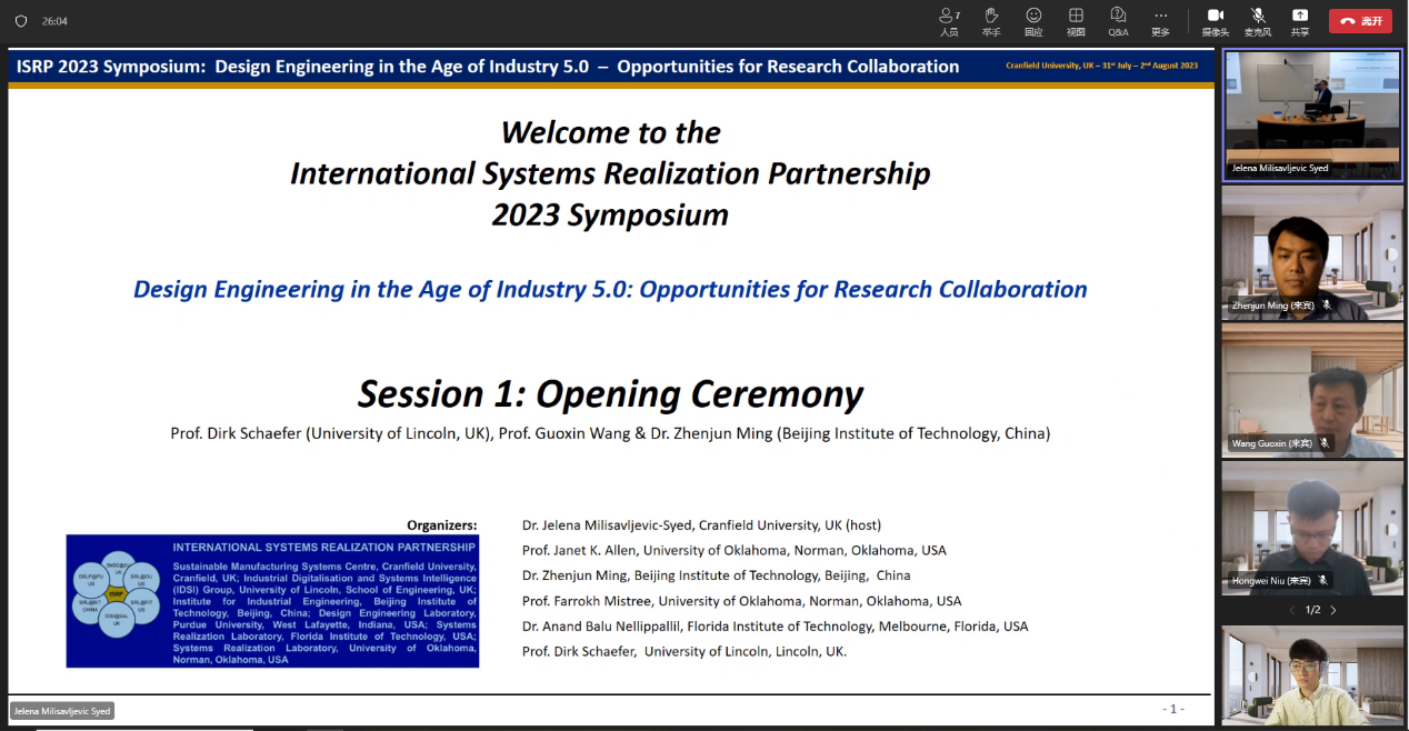 7月31日至8月2日,必威西汉姆联官网“国际系统实现联合实验室”及北京市“人车协同与智能决策国际联合实验室”2023年度国际会议隆重举行,主题为“工业5.0时代的设计工程”。会议分为必威西汉姆联官网分会场和英国克兰菲尔德大学分会场,以线上线下相结合的方式进行。