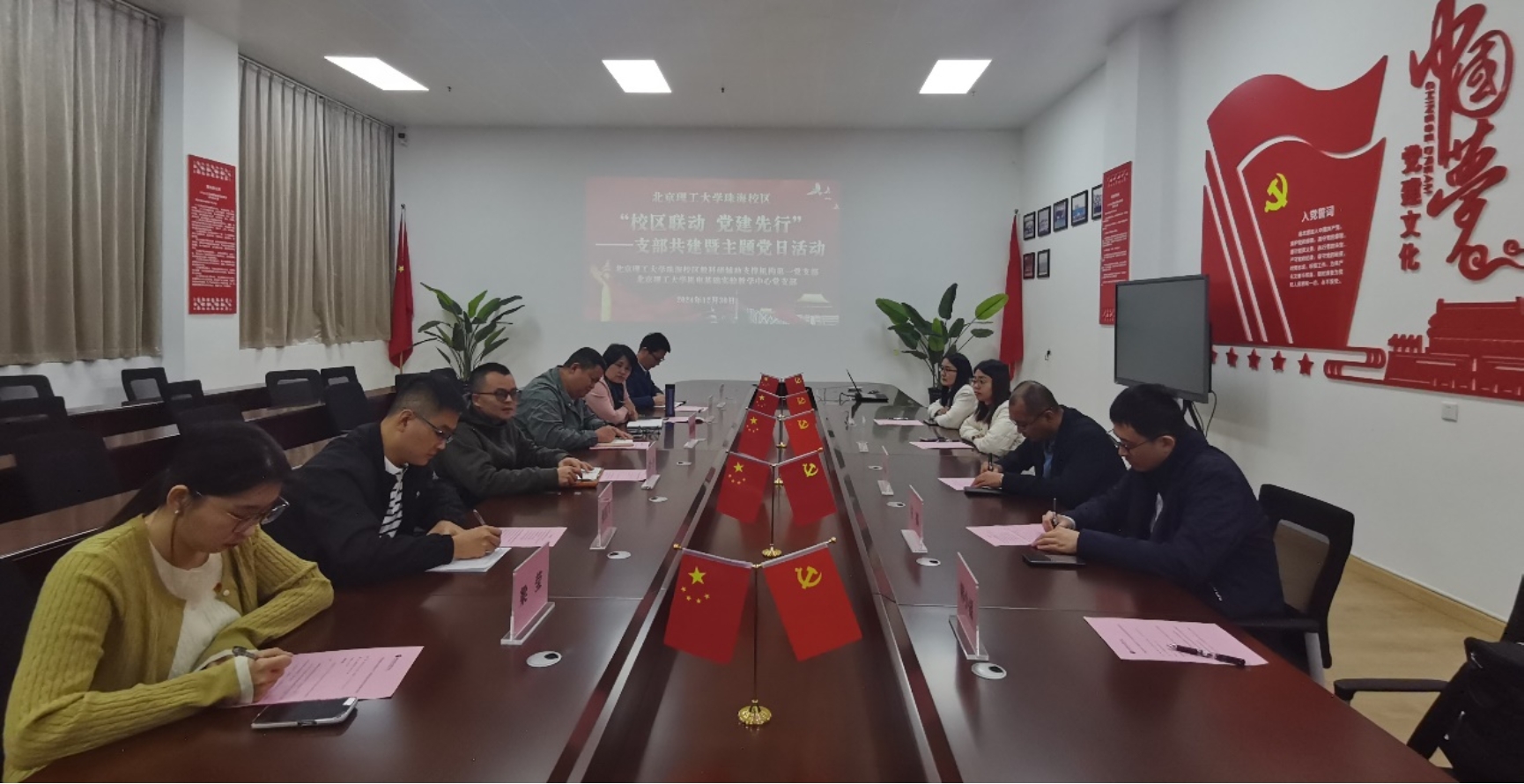 在主题座谈中,机电基础实验教学中心党支部书记李忠新和珠海校区教科研辅助支撑机构第一党支部书记刘文涛分别介绍了两个支部的基本情况。刘文涛书记领学了习近平出席庆祝澳门回归祖国25周年大会重要讲话,并介绍了珠海及珠海校区深厚的历史文化底蕴及地理位置优势。李忠新老师围绕实践教学改革与发展进行了主题分享,双方党员就如何实现党建引领下的实践教学创新进行了深入交流。