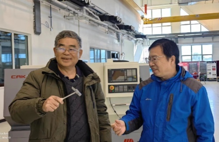 马树奇对吴万荣的到访表示热烈欢迎,随后介绍了工训中心建设概况、育人特色,并带领吴万荣全面参观了工训中心老机床思政教育基地、传统制造车间、先进制造车间、智能制造生产线、机器人创意实践室、3D打印创意实践室、测量反求实践室、激光加工实践室等实践教学场地,双方对场地建设情况、设备情况、课程内容情况进行了交流。
