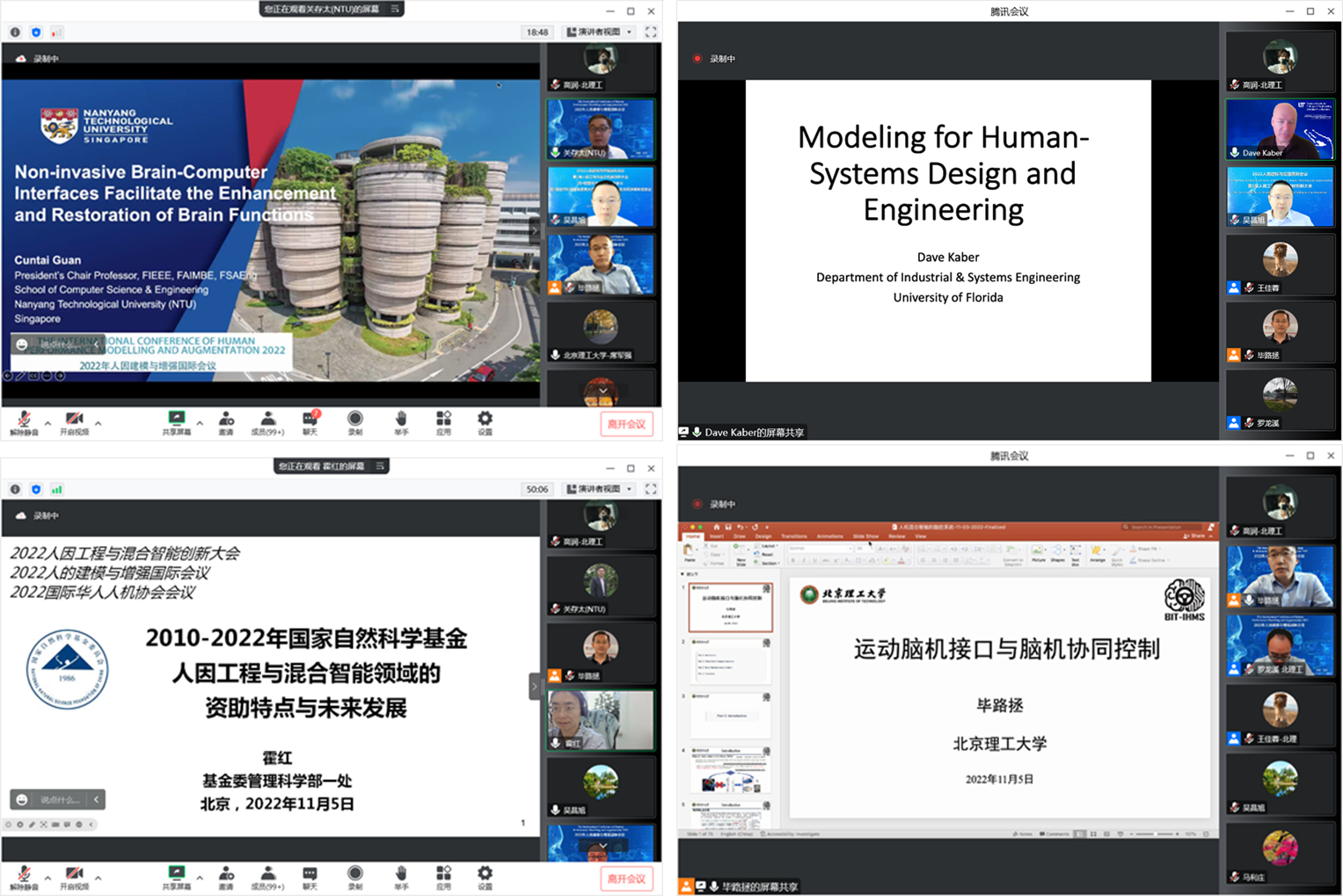 此次大会主题为创新混合智能设计、发展人因硬核技术,以线上形式举行,参与人数达七千余人次。报告内容涵盖了脑机接口、人的建模、脑机协同、人因工程以及类脑理论等多个方面。新加坡工程院院士、新加坡南洋理工大学校长讲席教授Cuntai Guan、美国佛罗里达大学杰出教授Dave Kaber、国家自然基金委员会管理科学部霍红处长、中国人工智能学会副理事长孙富春教授等众多国内外专家学者做了精彩报告。