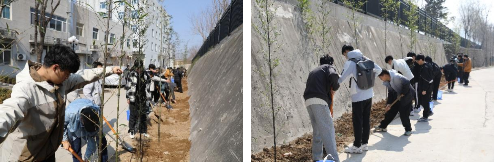 参观结束后,车辆实验中心主任董明明作现场动员。他强调,植树造林是功在当代、利在千秋的民生实事,正如树立和践行正确政绩观所要求的,既要做好“显绩”,更要注重“潜绩”,号召师生们以“钉钉子精神”凝心聚力、携手添绿,为美丽校园建设贡献自己的一份力量。随后,师生们分组协作、默契配合,有序完成挖坑、扶苗、填土、浇水等工序,亲手栽种紫竹、月季。铁锹破土、清水浇灌间,为西山校园增添了盎然新绿,师生们在劳动中体悟到“真抓实干”的深刻内涵。