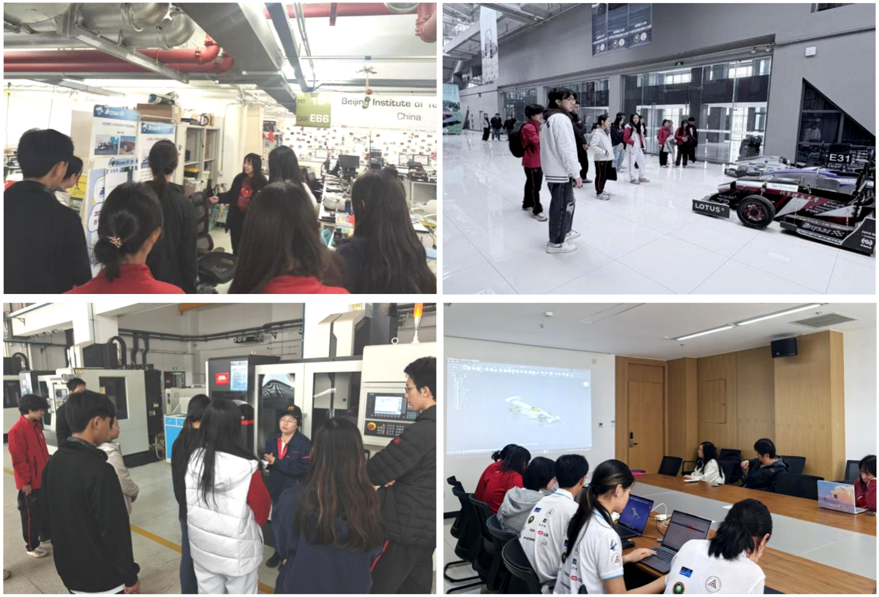 3月17日下午,北京师范大学附属实验中学师生一行12人来到良乡校区工训楼,与北理工电动方程式赛车队开展了一场深入的交流研讨活动。此次活动旨在以“方程式赛车”这一共同的科技创新活动为契机,搭建大-中两校赛车队科技创新交流的平台,激发中学生对车辆工程领域的兴趣,并为他们备战国际“F1 in school(STEM Racing)青少年科技创新挑战赛”提供经验分享与指导。我队指导教师靳松、张雨甜,工训中心实验师李梅、冯吉威等参加了活动。