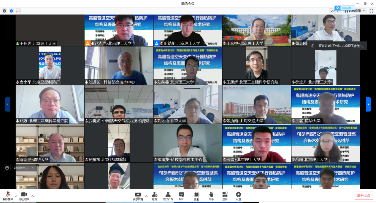 2022年6月18日,国家重点研发计划“高性能制造技术与重大装备”重点专项“高超音速空天变体飞行器热防护结构及表面减阻技术研究”青年科学家项目启动暨实施方案论证会顺利召开。此次会议以线上形式召开。
