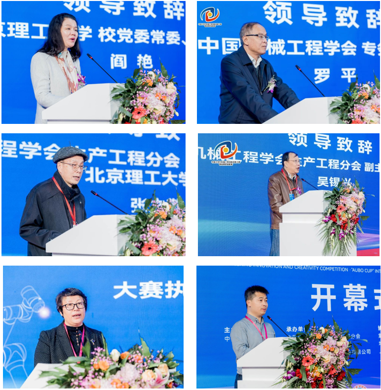 大会邀请了中国工程院院士谭建荣做交流报告,中国机械工程学会专务秘书长罗平、中机生产工程分会副主任吴锡兴、必威西汉姆联官网校长助理阎艳教授、邀博董事长魏洪兴教授、原国防科工局副巡视员彭艳萍、中机生产工程分会(精密装配领域)主任委员、北理工张之敬教授等致辞。大赛组委会秘书长、北理工教授李朝将教授主持开幕式。谭建荣院士分享了智能机器人的相关关键技术与未来发展,阎艳教授指出装配竞赛是支持创新的一个平台、一个载体,张之敬教授阐述了智能装配技术的核心。